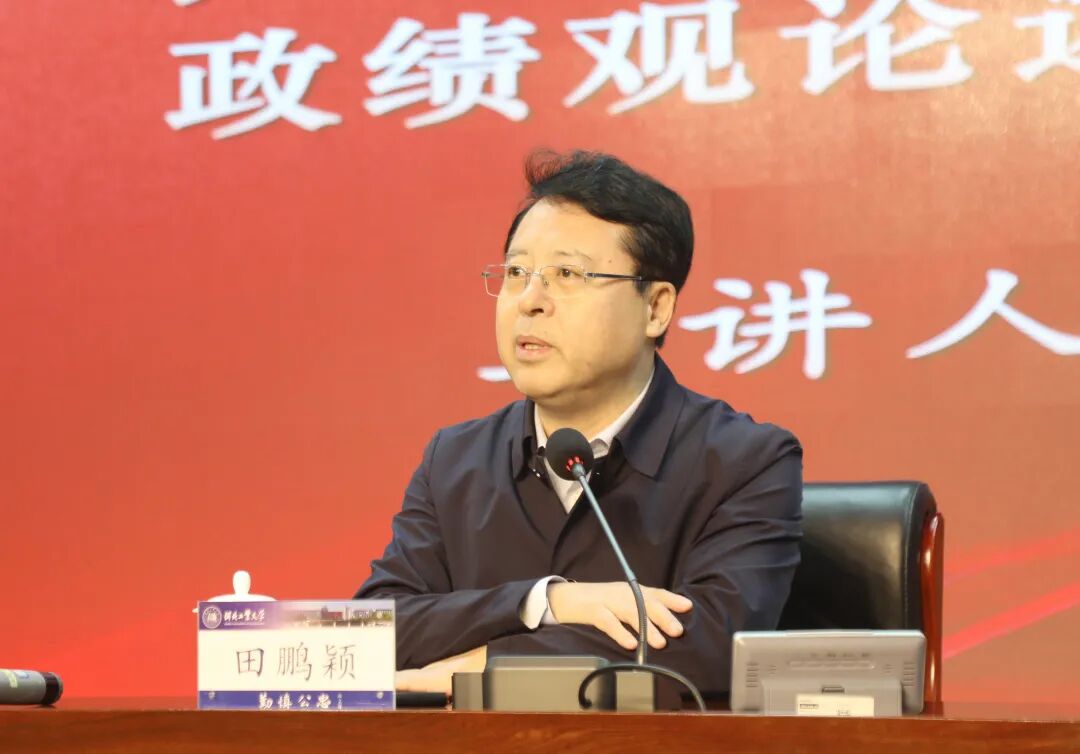 读书班邀请了东北大学中国式现代化研究院院长、马克思主义学院教授田鹏颖作专题辅导报告。田鹏颖以《政绩观问题是一个根本性问题——学习〈习近平总书记关于树立和践行正确政绩观论述摘编〉精神》为题,紧紧围绕政绩为谁而树、树什么样的政绩、靠什么树政绩等问题进行了深入浅出的阐述,既有理论高度、又有实践深度,为学校党员、干部深化理论学习、强化使命担当、提升履职能力提供了有力指导。