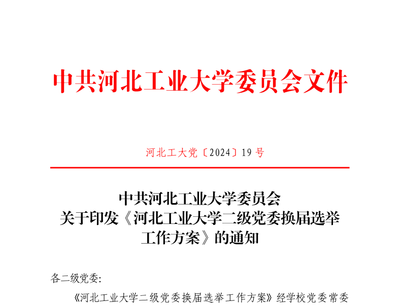 扎实做好党组织换届选举工作。成功召开中国共产党河北工业大学第六次党员代表大会,指导21个二级党委全部完成换届选举工作。健全提醒督促机制,409个基层党支部全部按期换届;