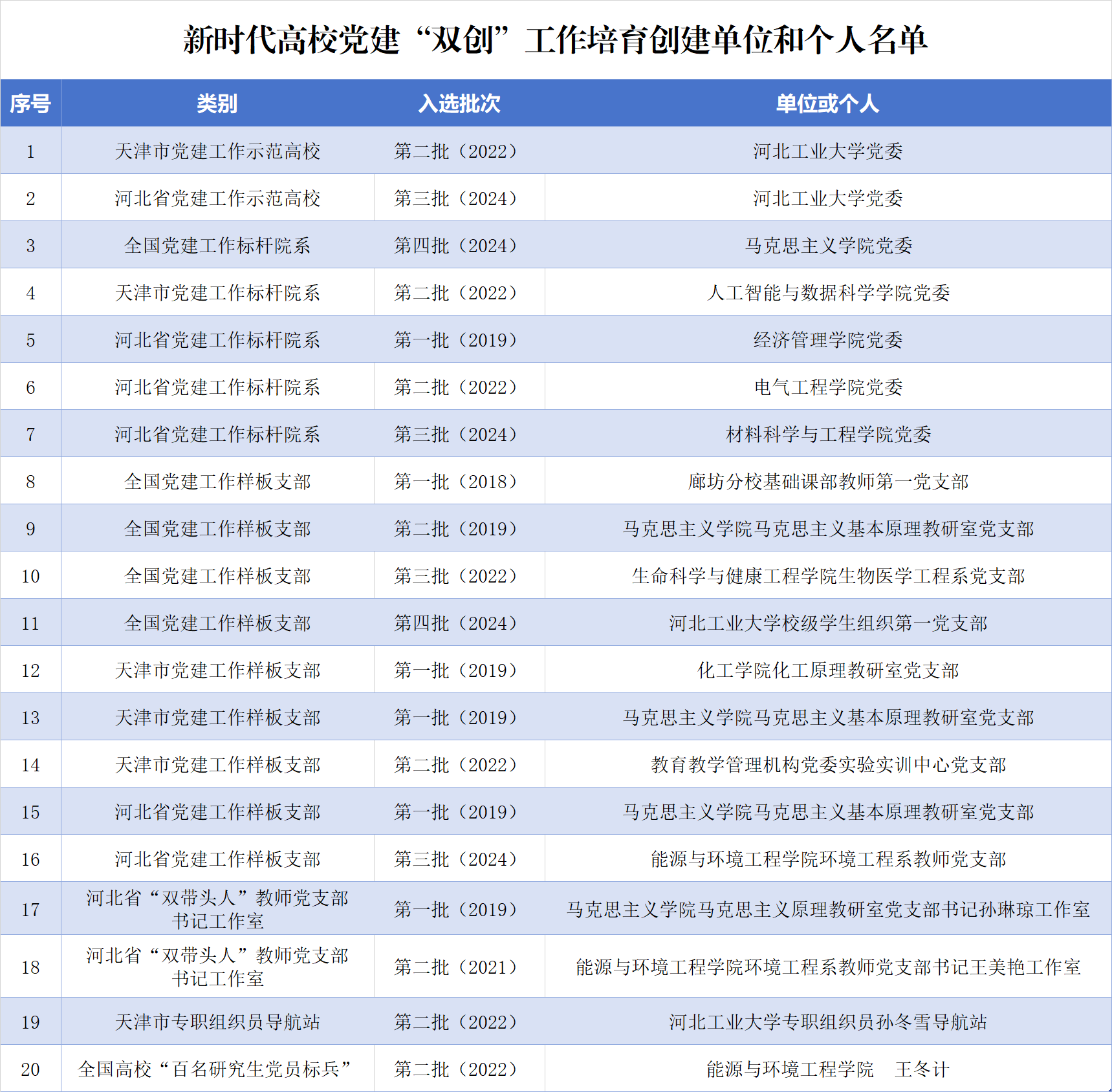 实施党建品牌提升计划。深入推进党建“双创”项目创建培育工作,获评全国党建标杆院系、全国党建样板支部、第三批“全省党建工作示范高校”、天津市党建工作“示范高校”等国家和省部级荣誉20余项。构建“国家级-省市级-校级”双带头人教师党支部书记“强国行”专项团队三级建设体系,9个党支部入选国家级或省市级“强国行”专项行动团队;