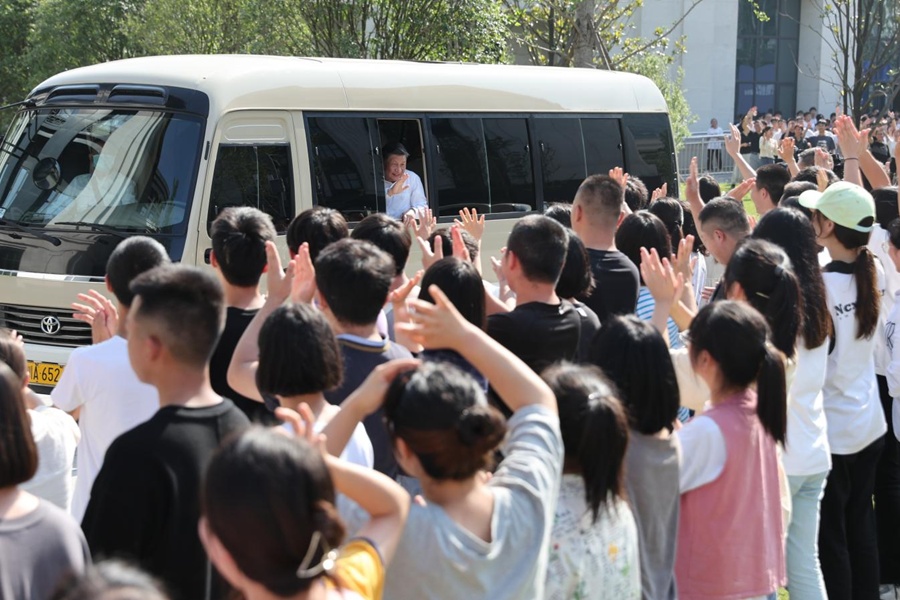 2022年6月8日下午,习近平总书记在宜宾学院考察时,向师生们挥手致意。新华社记者 姚大伟 摄