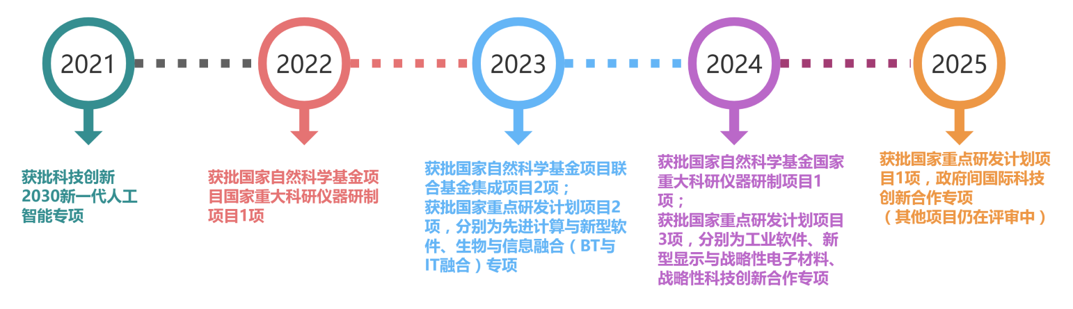 核心技术加速突破。在新一代人工智能、先进计算与新兴软件、工业软件、战略性科技创新合作、新型显示与战略性电子材料等领域承担国家重大项目。“十四五”期间国家重大重点项目立项85项,较“十三五”期间增长142.86%。