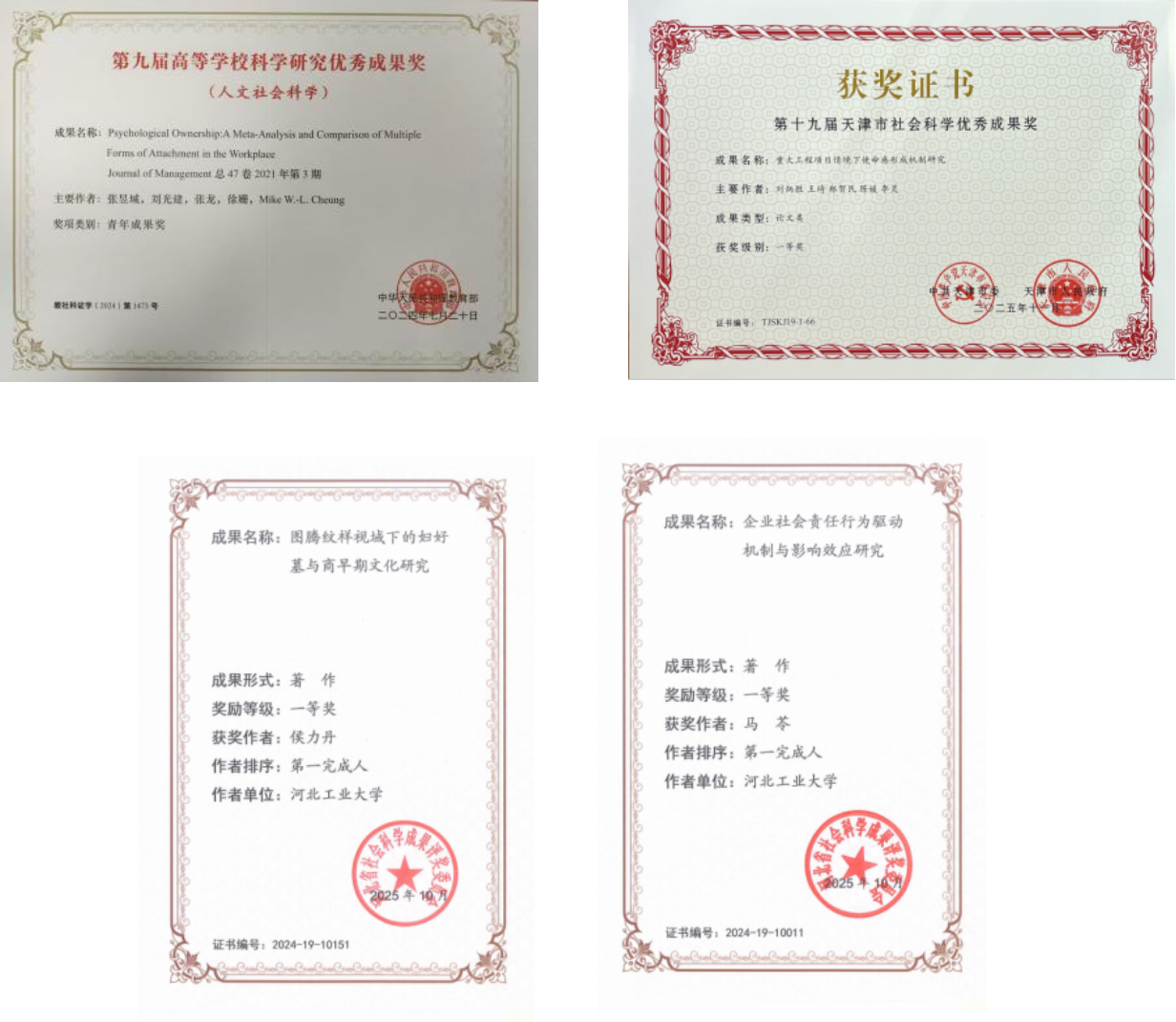 资政应用成效显著。“十四五”期间,国家社科基金项目获批37项,其中包含重点项目2项;荣获第九届高等学校科学研究优秀成果奖(人文社会科学)青年成果奖等省部级社科奖励27项;2025年,获批省级社科优秀成果一等奖3项,其中河北省2项、天津市1项,获奖数量和级别均取得较大突破;32篇资政报告被省级以上领导作肯定性批示,其中2篇报告获国家级领导人批示,咨政建议应用转化效能显著提升。