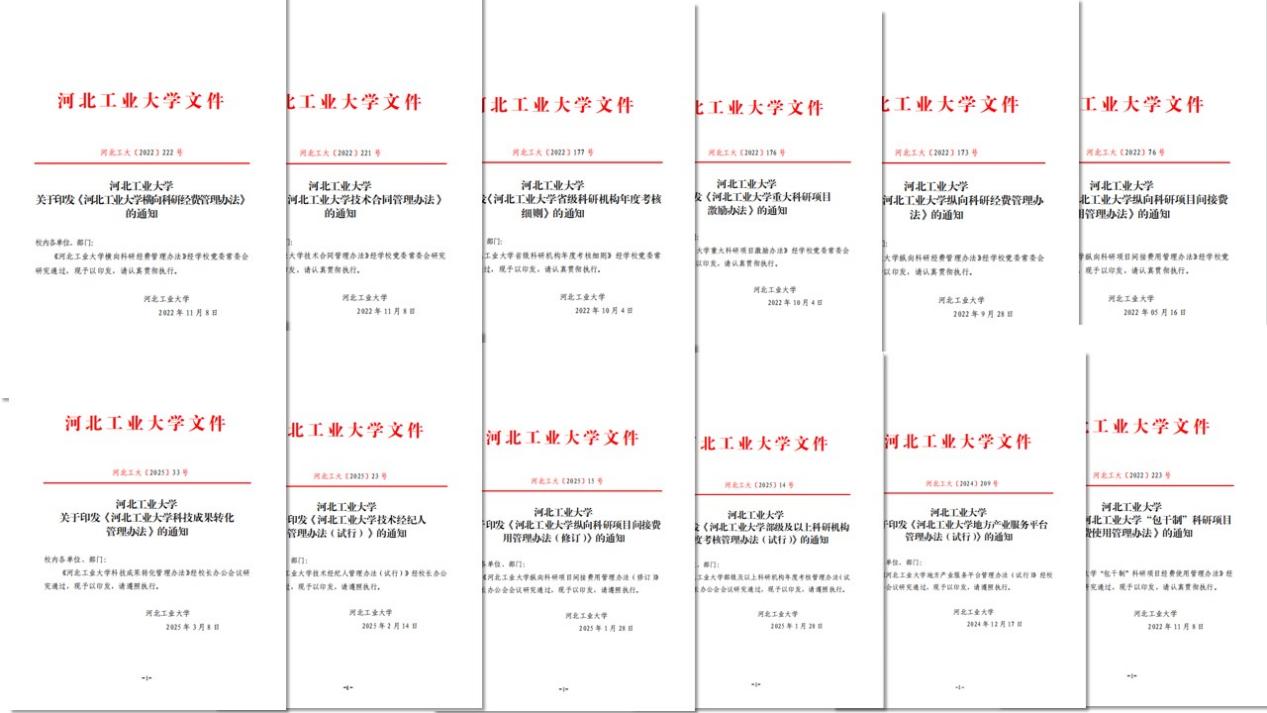 深化科研体制机制建设。不断完善符合学校发展实际的科研政策和激励机制,持续优化科技服务流程与成果转化管理模式,先后制定政策文件13个,系统规范科研工作全过程,充分激发师生创新活力。通过强化制度保障与机制创新,有效促进了高质量科技成果的持续产出,加速了科技创新成果向新质生产力的有序转化。