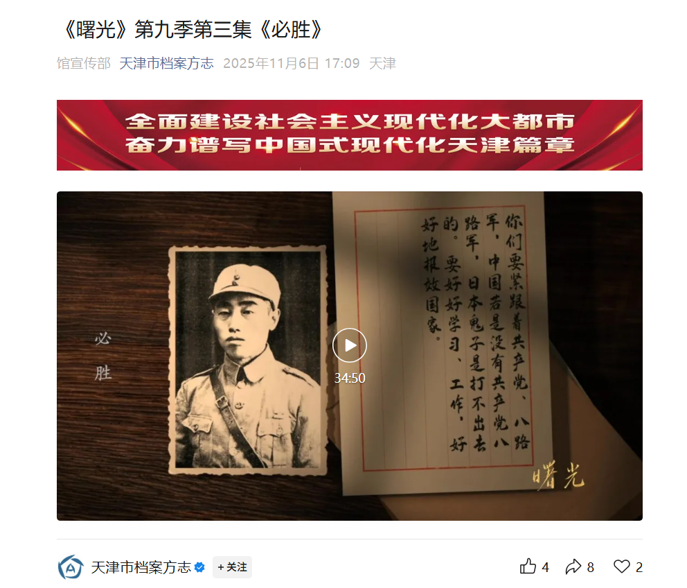 天津市档案方志发布《曙光》第九季第三集《必胜》