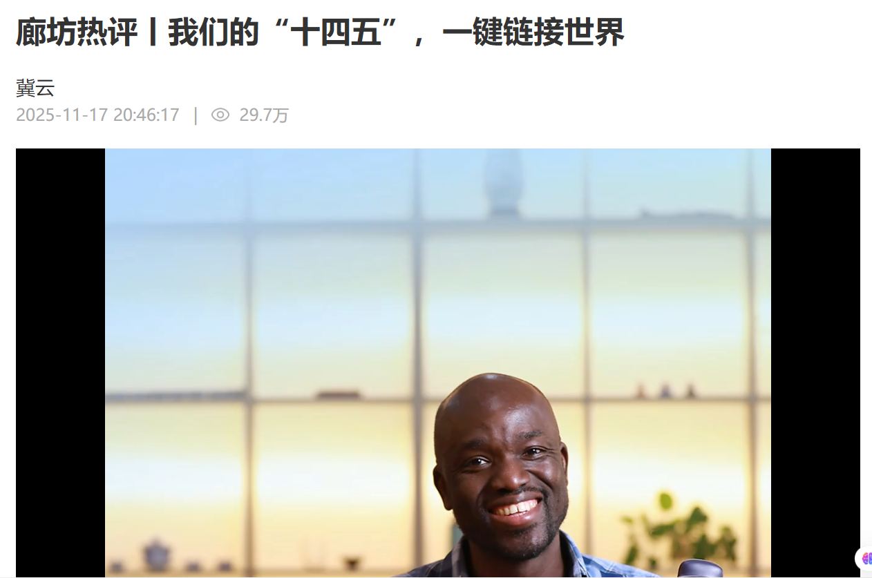 Hi everyone, my name is Paul, and I'm from Nigeria. It’s a fantastic feeling to "go international" together with Langfang during its "14th Five-Year Plan" period.