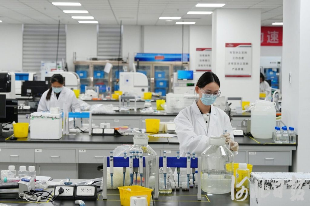1月21日,位于廊坊经济技术开发区的热景(廊坊)生物技术有限公司,员工在实验室进行样本测试。河北日报记者王伟摄