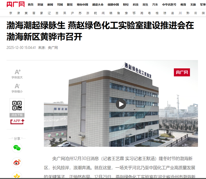央广网报道:渤海潮起绿脉生 燕赵绿色化工实验室建设推进会在渤海新区黄骅市召开