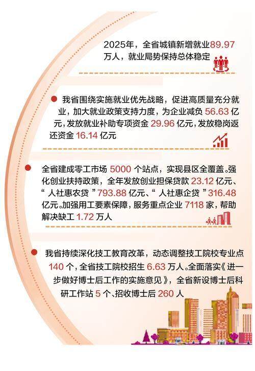 广大经营主体是稳住就业基本盘的关键。去年,我省围绕实施就业优先战略,加大政策支持力度,发放就业补助专项资金29.96亿元,发放稳岗返还资金16.14亿元。
