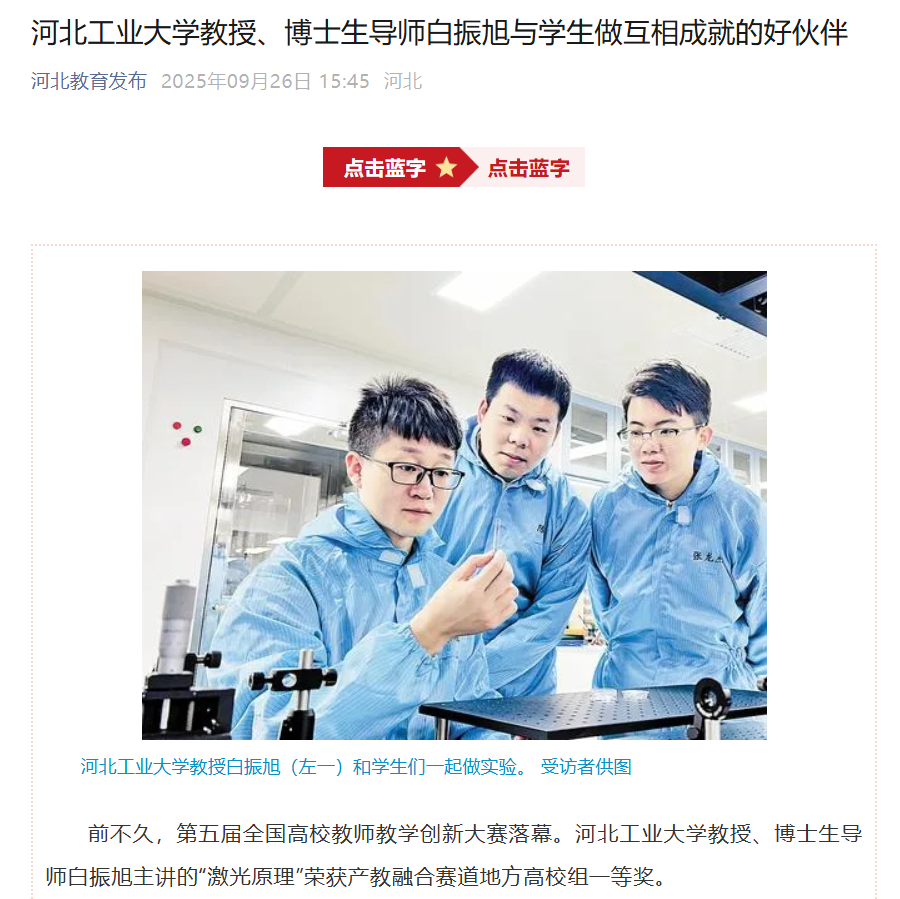 9月26日,河北教育发布报道我校教授、博士生导师白振旭与学生做互相成就的好伙伴。