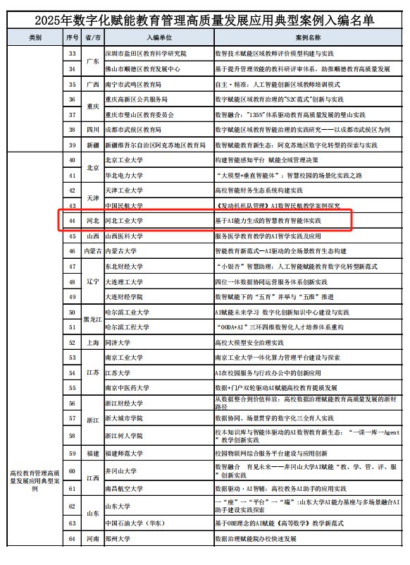 河北工大“智慧教育智能体实践”入选教育部2025年数字化赋能教育管理高质量发展应用典型案例