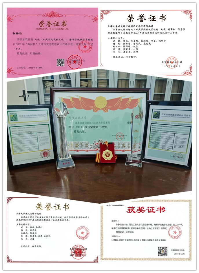 校园规划与建设处始终将建筑品质与结构安全作为基建工作的核心抓手,推动校园建设从“有没有”向“好不好”转变。“十四五”期间各建设项目获得多项荣誉,图书馆等建筑获得省部级以上建筑工程奖8项次(其中图书馆获得国家优质工程奖)、建筑设计奖5项;图书馆二星绿色建筑设计标识证书;多功能风雨操场获得三星绿色建筑设计标识、健康建筑金级证书。